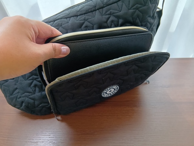 『Kipling整理上手な8ポケット星柄キルティングバッグBOOK』のバッグは、トレンドの三日月形のショルダーバッグです。