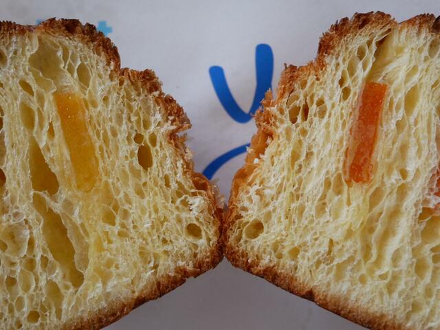 オレンジの酸味と甘味がとても美味しい!オレンジの皮が脇役ではなく、主役級にきいていて、全体的に甘さが抑えられているので菓子パンというよりも食事パンとして楽しめるのもおすすめのポイントです。