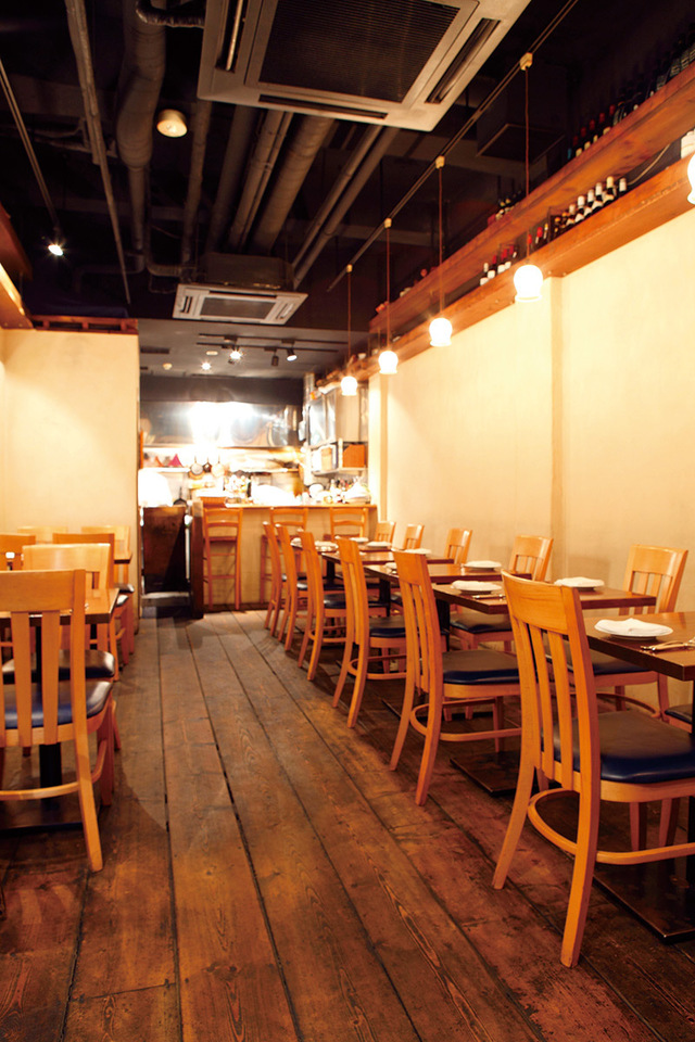 銀座でフレンチと聞くとなかなかお値段が張りそうな気がしてくるが、ここ「マルディグラ」はビストロに近い気安さがある。入口こそプレートひとつで後は地下への階段だけと見つけにくいが、店内には落ちつきと親しみが感じられる空間が広がる。