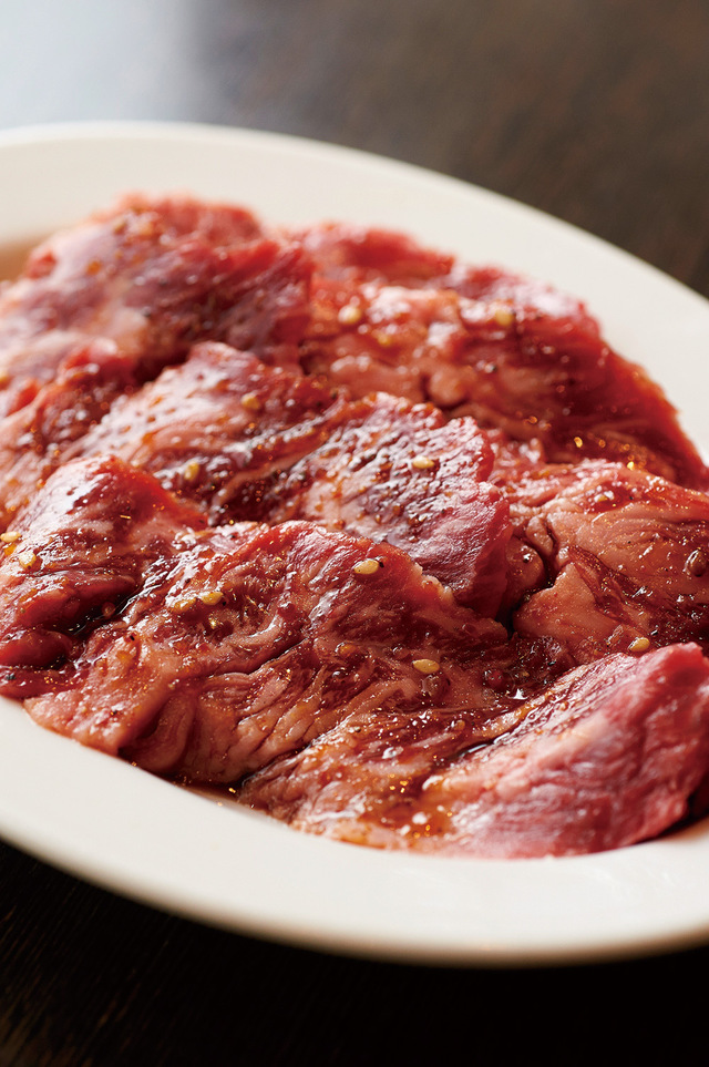 とくに一頭から手のひらサイズしか取れない「メガネ」(一人前1004円)は、ほかではお目にかかれない幻の部位。肉の細やかな繊維が感じられ、かめばかむほどにうま味がジワッとあふれ出す。肉は1枚単位でオーダーできるので、新しい部位を味わってみたい、という焼き肉初心者にもおすすめだ。接待はもちろん、家族の食事やデートでもシーンを選ばない使い勝手の良さも魅力。