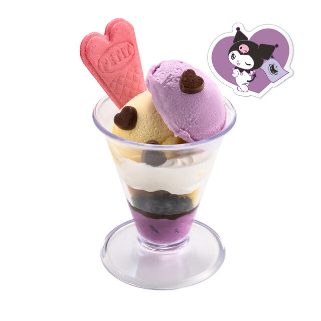 同フェアでは、秋の味覚“おいも”を使った「クロミ」とのコラボスイーツが3種類登場。「Wおいものチョコっとパフェ」は、宮古島産の紫いもを使用したアイスとムースと茨城県産「紅はるか」を使用したさつまいもアイスの両方を味わうことができます。
