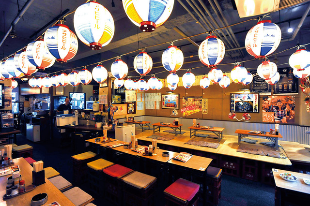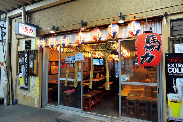 ビールケースを利用したテーブルやイス、並んだ提灯など店内はお祭りのように賑やかな雰囲気。94円~そろう焼鳥・焼きとんの他、焼津から直送される旬の魚、網焼きなどメニュー豊富で、ほとんどのものが500円以下で食べられる。元精肉店のオーナーが独自のルートで仕入れる馬肉もオススメ。