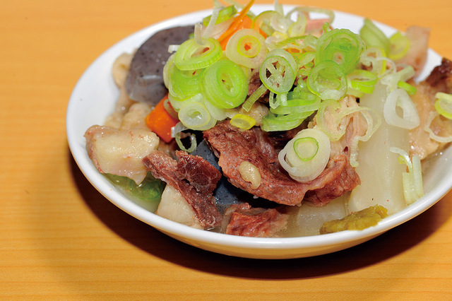 すじ煮込 409円 あっさりした塩味で、ユズ胡椒も添えられている。5時間も煮込むすじ肉は驚くほど柔らか 拡大画像表示