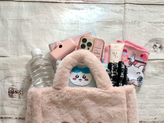 お出かけに必要なもの以外に、これからの季節の必需品である手袋やハンドクリームなどもラクラク収納可能でした!