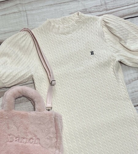 ・ホワイトのケーブルミニニットドレス