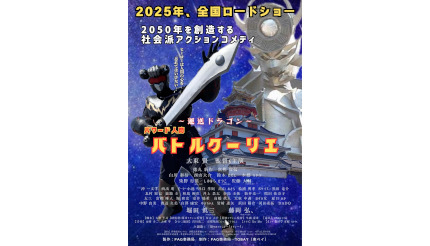 PAG事務局 パワーアクショングロウは10月23日に、映画「~運送ドラゴン~パワード人間バトルクーリエ」が2025年に全国ロードショーされることを発表した。11月29日にはイオンシネマ四條畷(大阪府四條畷市)、12月6日にはイオンシネマ板橋(東京都板橋区)にて、試写会と舞台挨拶が開催される。