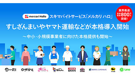 全国に拠点を構える大手求人パートナーによる「メルカリ ハロ」の本格導入としては、寿司チェーン大手のすしざんまいが11月以降に「メルカリ ハロ」の導入を全国へ拡大するほか、物流業界の最大手であるヤマト運輸も「メルカリ ハロ」の本格導入を開始している。ほかにも、多くのパートナーが「メルカリ ハロ」の導入を決定しているという。