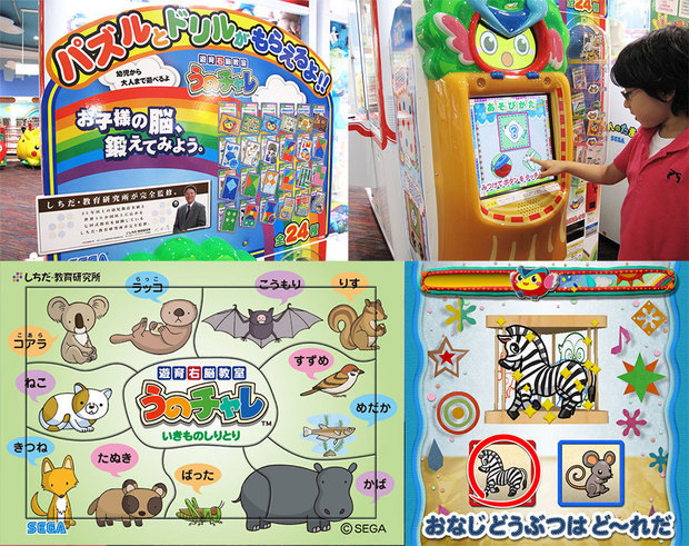 今回遊んでみた『遊育右脳教室 うのチャレ』は、ゲーム会社セガが6月からサービスを開始した、幼児向けのデジタル知育遊具。ショッピングセンターのゲームコーナーなどに設置されているゲーム機です。
