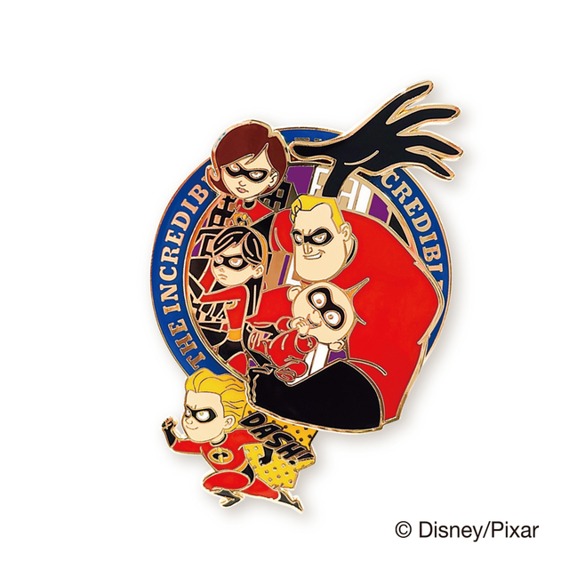 Mr.インクレディブルのピンバッジは、ダッシュが360度回転します。