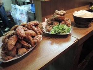 そこに手羽先10本(塩・タレ各5本)と丸鶏の半身揚げを乗せ、完成。