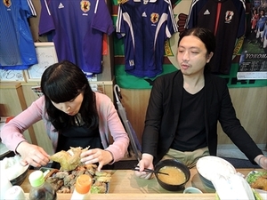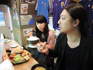 開始から約10分、順調に箸がすすむ桝渕嬢とクドーですが、36歳の独身は見事にペースダウン。箸が、重たくなってくる。その後は・・・食べる、食べる・・・止まる。