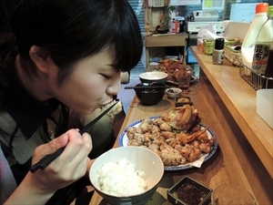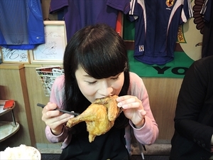 とにかく、笑顔で鶏をかたっぱしから味わう桝渕嬢。粗末に食べはせず、しっかり味わい、ある種丁寧に食べ進めていく。「早く食べましょうよ!」と言われたので、こちらもいただくことに。