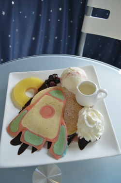 たくさんのオリジナルメニューの中でも、ロケット型やおひさま型、驚きの虹色など、見た目にも楽しいパンケーキは訪れたら絶対頼みたいわくわくメニュー。