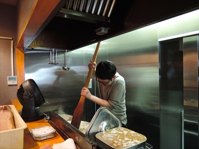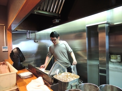 おおおおおおおお。目の前に広がるスープ、キャベツ、焼き豚などの仕込みの光景に圧倒され、挨拶の途中で喚声と歓声の混声に変わってしまった。さすが仕込みからすでに大迫力である。