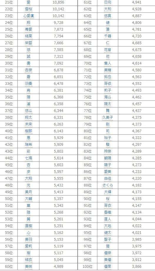 また、20位までにランクインした名前の中でなんて読むのかなと気になった名前もいいくつかピックアップして調べてみました。