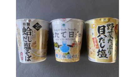 カップラーメンの塩味の中でも、最近人気を集め急増しているのが「貝出汁ラーメン」。今ではどこのコンビニに行っても、2種3種の商品をみかけるほど。そこで、誰に頼まれたわけでもないのに、さまざまな事象を検証する「勝手に調査委員会」なるものを立ち上げ、どの商品が最も貝の味わいが強いかを調べることにした。では早速、今回エントリーした3商品を紹介していこう。