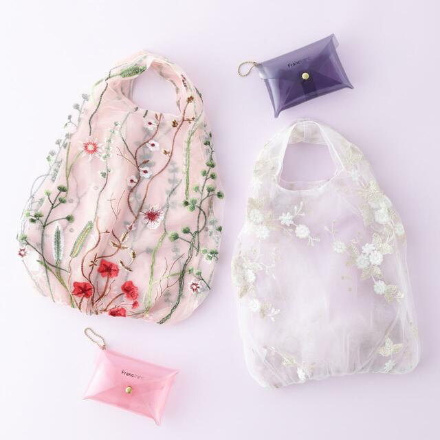 全部で8色あるお好みで選ぶのが楽しくなるチュールバッグシリーズ。いろんな花柄モチーフの刺繍と、チュール素材の透け感が乙女心をくすぐります。