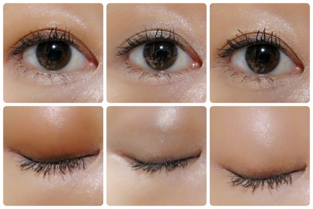上記の方法でアイシャドウを塗っていますが、二重幅が強調されているのが分かるかと思います。目を閉じたときに不自然でないのも嬉しい。二重幅が狭めで悩んでいる方にもぜひ試していただきたいアイテムです。