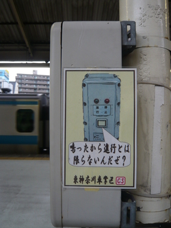 4番線(京浜東北線:新子安方面)に注意書きはなし。階段を上り、1番線(京浜東北線:横浜方面)へ。