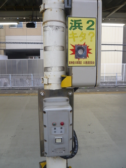 1番線には「時刻確認」、2番線には「浜2」(3番ホームの意味)の文字が。