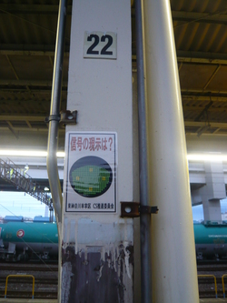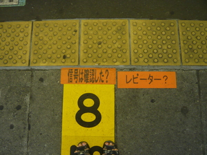 2番線(横浜方面)には「閉扉合図確認!」などの注意書きあり。