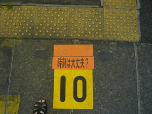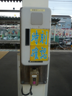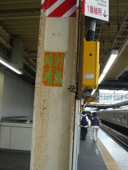 根岸駅に到着。1番線ホームに「時刻は大丈夫?」との注意書きが!