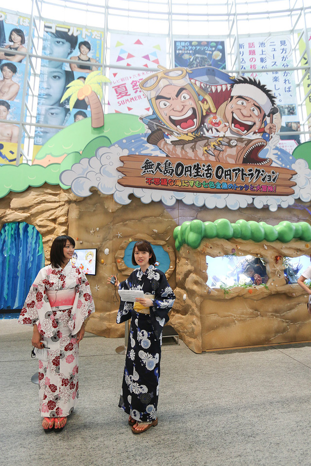 「テレビ朝日アトリウム」では、人気番組「無人島0円生活」の体験型アトラクションを体験。“七色金魚のトッタと大冒険"は、大きな魚の出現をはじめとする趣向を凝らした面白い仕掛けが満載。