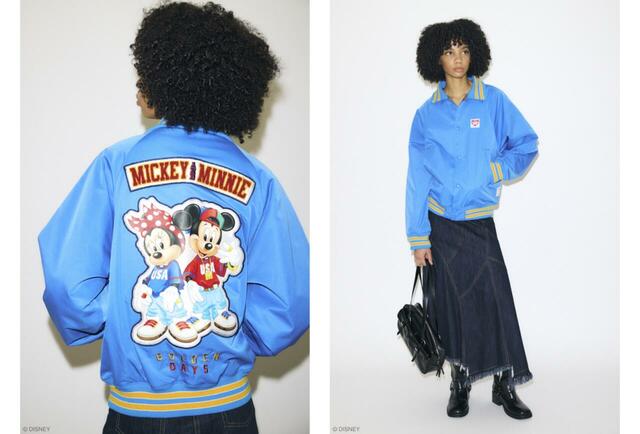 ミッキーとミニーが90s前半にストリートで大流行したファッションスタイルでデザイン。