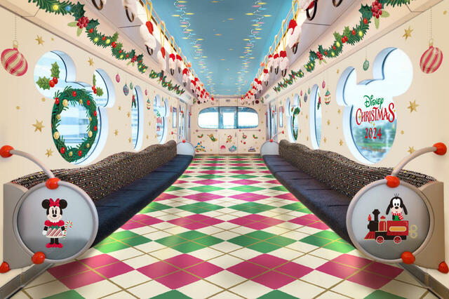 5年ぶりにクリスマスのデコレーションを施した「ディズニー・クリスマス・ライナー」が運行。