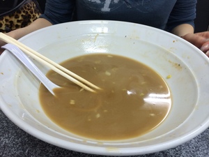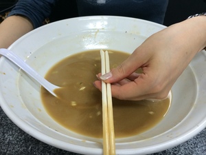 これだけ食べ続けているのにもかかわらず、ラーメンは半分も減っていない。「完食は無理なのでは・・・」「取材の申し込みすらできないかも」など、ネガティブワードが頭に浮かぶ。しかし、取材ができなかったら・・・(定休日を含めて二度)来た意味がない!