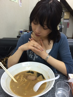 何とか「スーパージャンボチャーシューメン」を完食した松宮。