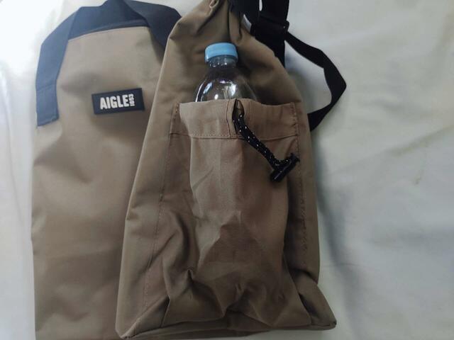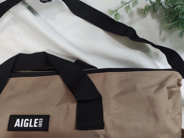 バッグ中央には、「AIGLE」とブランドロゴが記載されたタグがついており、大人っぽい雰囲気です。