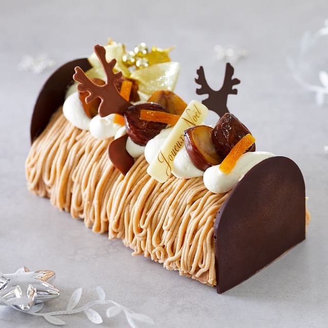 「ブッシュ・ドゥ・ノエル モンブラン」は、クリスマスケーキの定番、ブッシュ・ドゥ・ノエルをモンブランで表現しています。モンブランクリームやマロンムースの中に、キャラメルのブリュレやオレンジのジュレが層になった、食感・味わいともに楽しいひと品です。2024年12月21日(土)~12月25日(水)の発売です。