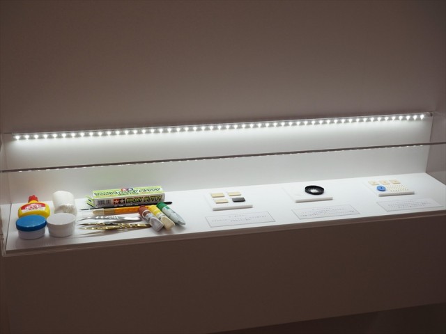 田中氏が作品制作の工程上で最も大切にしているのは、資料の選定と素材をどう作るか構想する準備段階だそう。樹脂粘土、プラスチック、紙、木など多くの選択肢の中から材料に最も適切なものをピックアップして時には混合して使用する。