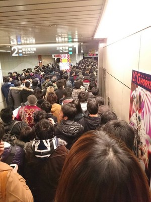 コミックマーケット85閉幕直後の駅のホームの様子