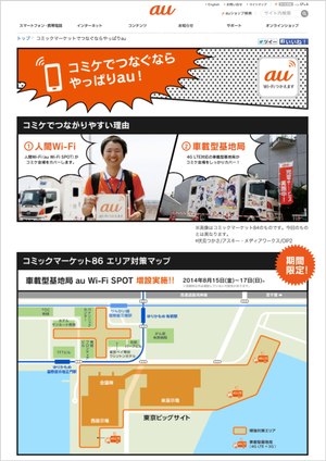 どうしてもインターネットを使う必要がある場合は、キャリアごとに車載型の基地局やスタッフが持ち運ぶWi-Fiスポットなどが用意されているので活用しましょう。ちなみに前回のコミックマーケット85では、auは「進撃の巨人」のラッピングトラック。docomoは「すーぱーそに子」仕様のトラック。SoftBankはおなじみ「お父さん」仕様のトラックで参加していました。果たして今回はどんな"痛基地局"が見られるのでしょうか。