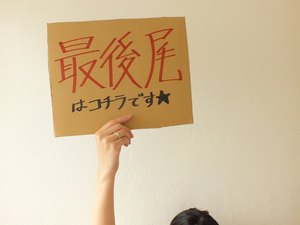 その名の通り列の最後尾を示す札ですが、スタッフさんがいない場合は列の最後尾に並んだ人が持つことになります。つまり、バケツリレーの要領で新しい人が来たら札を渡して行くわけですね。列に並んだときにこの最後尾札を手渡されたら、周りから文字が見えるように持ち、次の人が来たら渡しましょう。