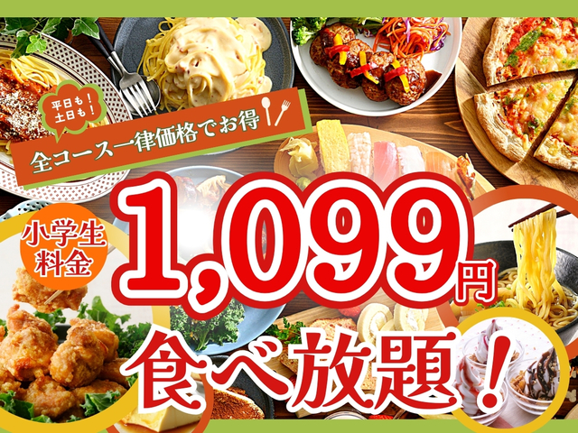 石川県金沢市で、バラエティー豊かな食べ放題が楽しめる「ザ ダイニング 香林坊大和」では、食べ放題の小学生料金を平日も土日も一律『1,099円』にて提供しています。