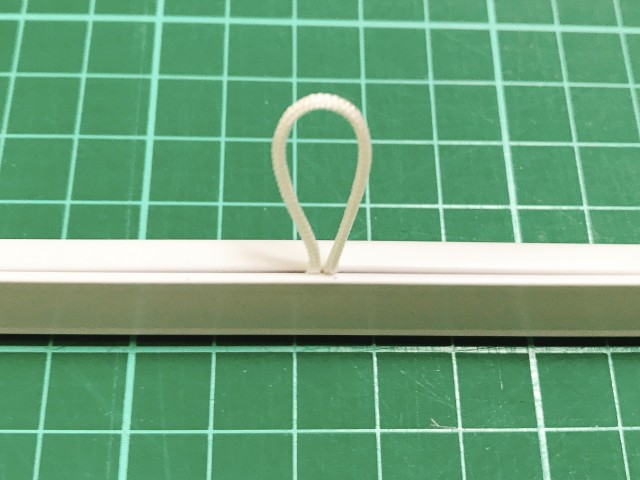 この位置がずれると吊るした時のバランスが悪くなるので、必ず真ん中25cm部分に留めてください。