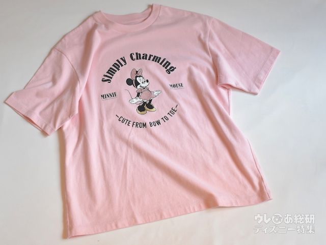 Tシャツにプリントされているのは、ピンクのドレスを身にまとったキュートなミニー。