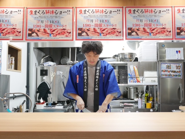 平日の夜、月に1度~2度不定期にて開催される『まぐろ解体ショー』にも注目!