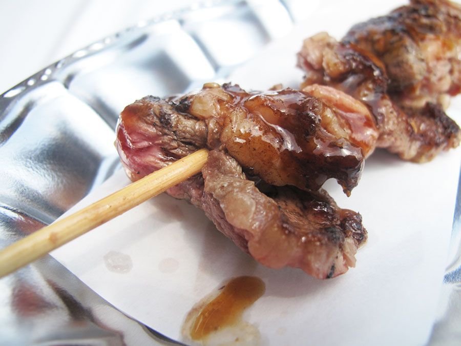 最後はアメリカ『どんなもん』さんの「アメリカンステーキ串」。ひと串に大ぶりのステーキが何個も連なるさまは、眼福としか言いようがありません。