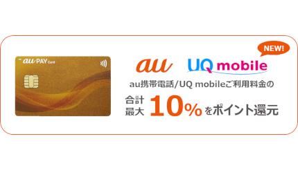 auフィナンシャルサービス、KDDI、沖縄セルラーは、au携帯電話の利用料金を「au PAY ゴールドカード」で支払うと、Pontaポイントで還元する特典について、2024年12月利用分からUQ mobileにも拡大する。