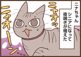 やっぱり「耳が遠くなったかな?」とか「走るのがゆっくりになったかな?」と思うことは増え、特にこれまでと変わったのがこの夜鳴きですね…。