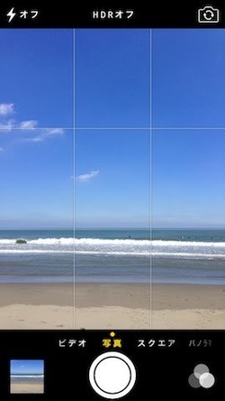 こんな感じで、青い空がたっぷり〜な爽やかな写真になりました。海だけの写真を撮るなら、この三分の二を空にするのがおすすめ!