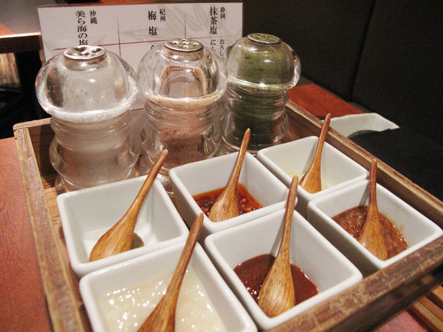 ポン酢と胡麻だれでも楽しめますが、薬味も美ら海の塩、梅塩、抹茶塩、ゆず胡椒、自家製らー油、おろしにんにく、塩麹、辛味噌、醤油麹と全9種類も用意されています。塩麹、辛味噌、醤油麹は麹菌を含んだ「菌活」薬味です。おすすめはどの組み合わせ……?