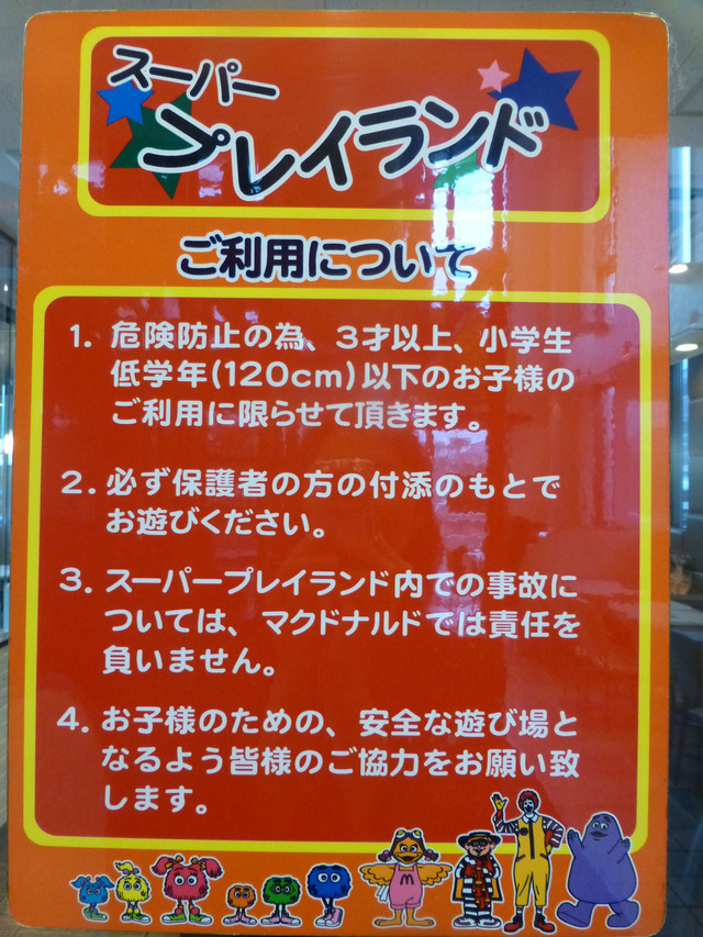 プレイランドで遊べる子どもの対象年齢は、危険防止のため3歳以上、小学生低学年(身長120cm)以下となっている。だいたい小学校3年生ぐらいまでが目安。遊具利用料は無料。利用条件(年齢・身長など)は店舗によって異なるそう。