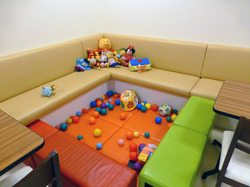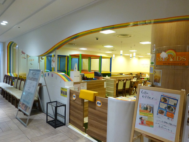 このお店のキッズスペースの特徴は、子どもの施設利用料(フリードリンク付)が食事代とは別にかかることだ。しかし、キッズスペースには専門のスタッフ「キッズサポートスタッフ」が子ども達の様子を見ていてくれるので、保護者はのんびりと食事を楽しむことができる、というスタイルになっている。