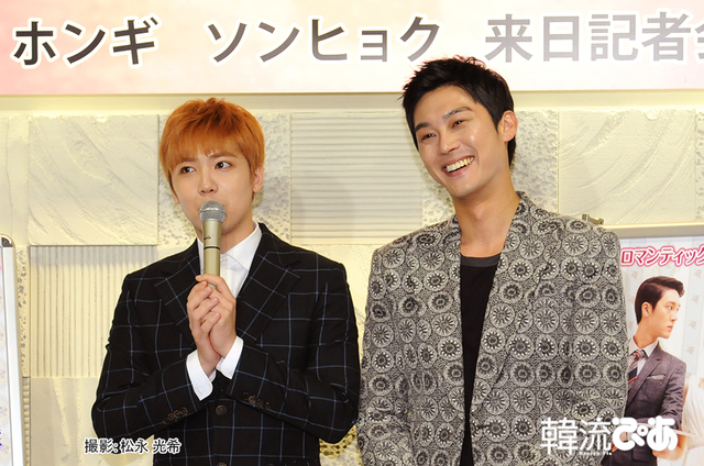 この日は、共演者のソンヒョクも同席。経営難に陥った実家の事業を救うため、ガンジュと妹の政略結婚に奔走する兄イヒョンのキャラクターについて「“あしながおじさん”のような役です」と説明するソンヒョクに、ホンギは「本当に長いですね!」とツッコミを入れて笑いを誘う一幕も。