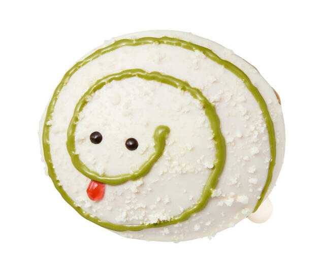白ヘビをモチーフにした縁起の良いドーナツ。ホワイトチョコや抹茶で仕上げられた見た目も可愛らしい一品。※1月1日~5日の期間は単品販売なし